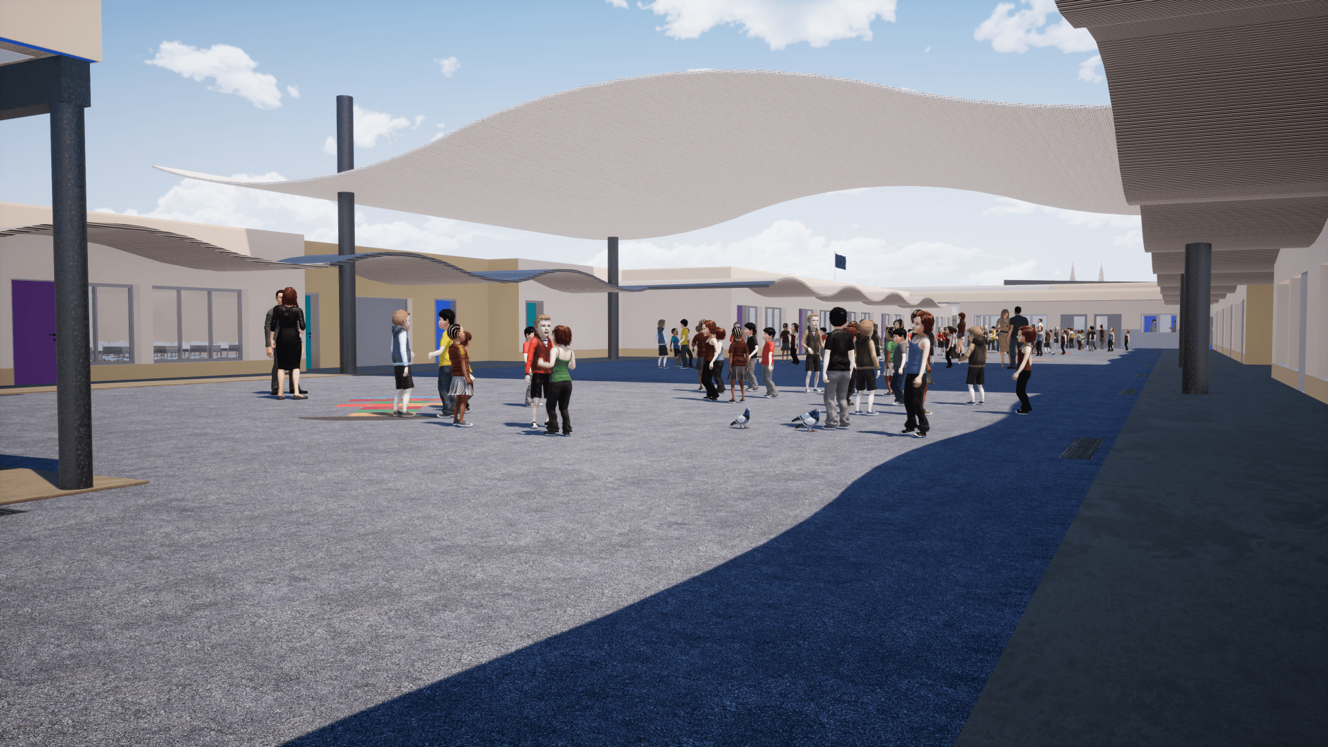 > avec 19 salles dont 4 salles de classe supplémentaires, 3 salles-tampons et une extension optionnelle en étage pour tenir compte de l’évolution démographique du quartier, à court, moyen et long terme.
